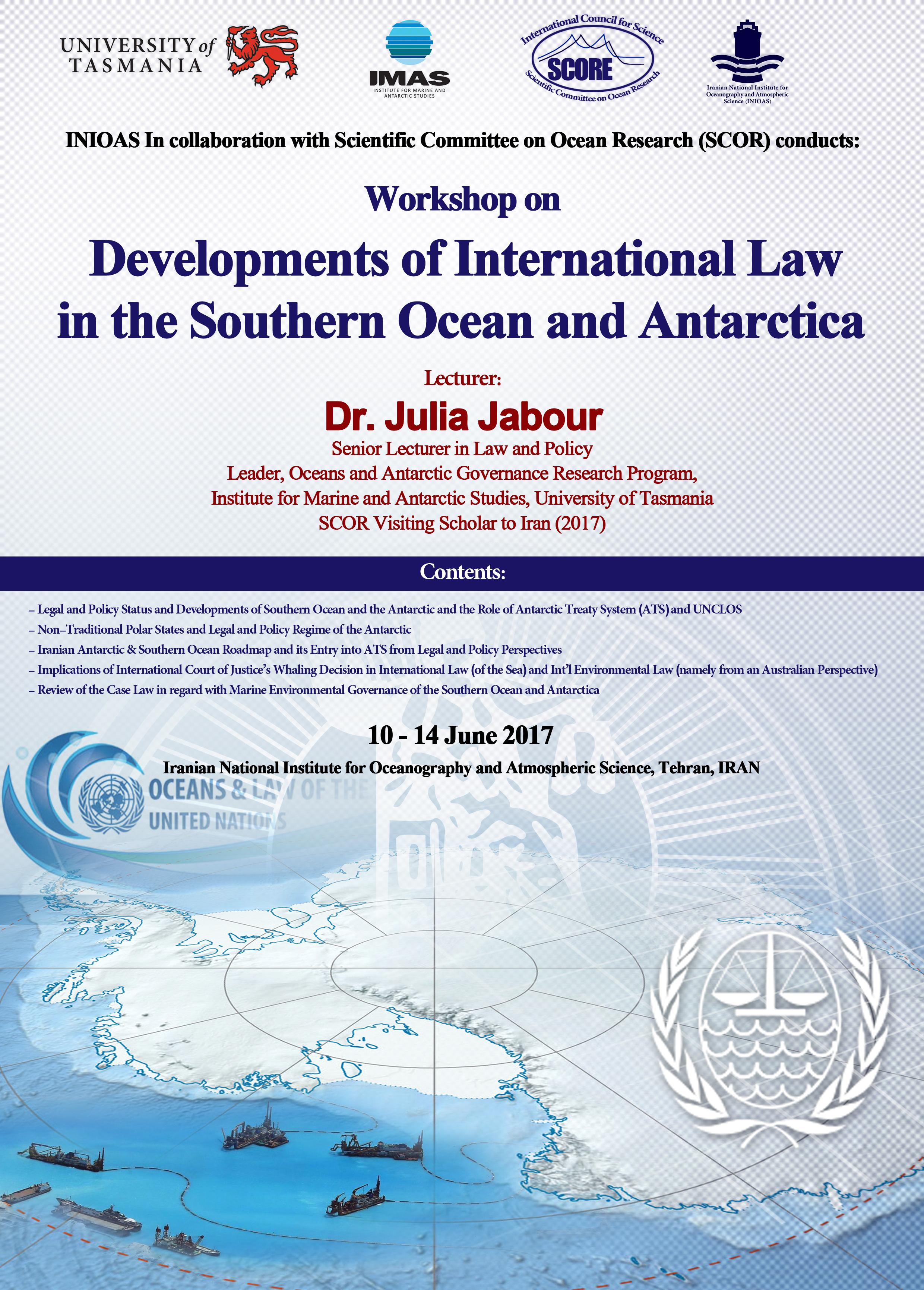 The Iranian National Institute for Oceanography and Atmospheric Science will host a four day workshop on developments of International Law in the Southern Ocean and Antarctica. This event results from a collaboration with the Scientific Committee on Ocean Research and the University of Tasmania and will take place on 10-14 June 2017 in Tehran, Iran. Details about the contents of the workshop can be found in this poster.