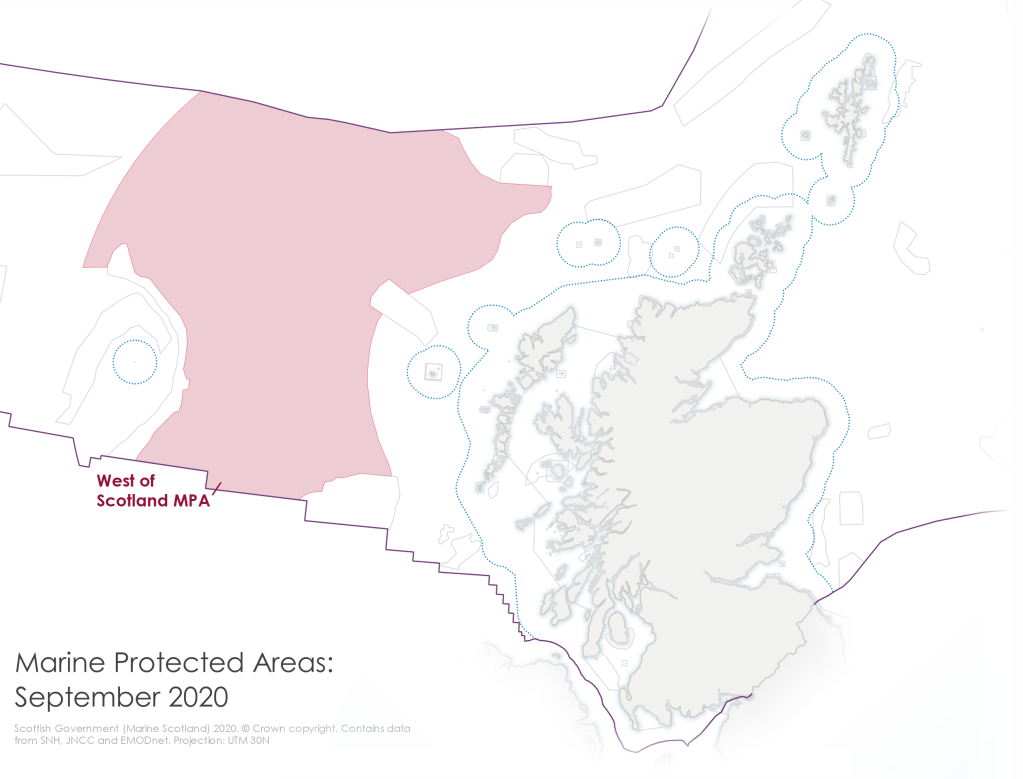 On 9 October 2020 the West of Scotland Marine Protected Area Order 2020, a Scottish Ministerial Order, entered into force, creating the largest MPA located in national waters within the North-East Atlantic. Features of the former Rosemary Bank Seamount MPA are now protected within the West of Scotland MPA.