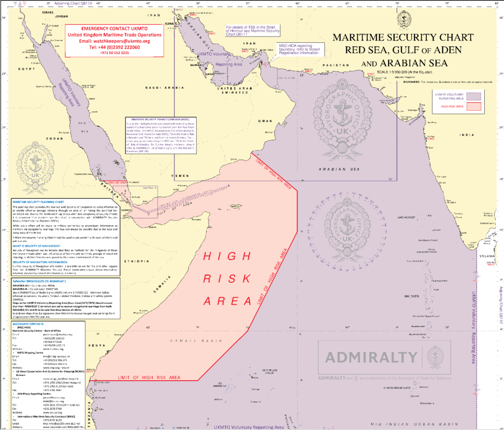A High Risk Area (HRA) in the Indian Ocean was designated by bodies representing the shipping industry in 2010 (BMP 5). Since then, various amendments to the extent of the area were made and in 2021 the IMO was informed that further revisions would occur, including development of a more dynamic threat assessment process (IMO Doc. MSC 104/8/2). On 22 August 2022 the IMO was informed by a co-authored submission (ICS, BIMCO, OCIMF, INTERTANKO, INTERCARGO and IMCA) that the Indian Ocean High Risk Area will be withdrawn on 1 January 2023 to reflect the the improved piracy situation in the region (IMO Doc. MSC 106/INF.10). The UKMTO Voluntary Reporting Area (VRA) appears to be, as yet, unchanged.